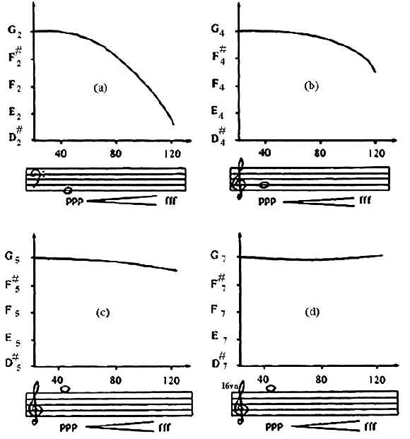 The dependence of the pitch of periodic complex tones (i.e. of complex tones with harmonic spectra) on frequency, intensity, duration, and the introduction of intense 'interference' tones is qualitatively similar to that of pure tones but more complex, due to the variety of frequencies involved. |