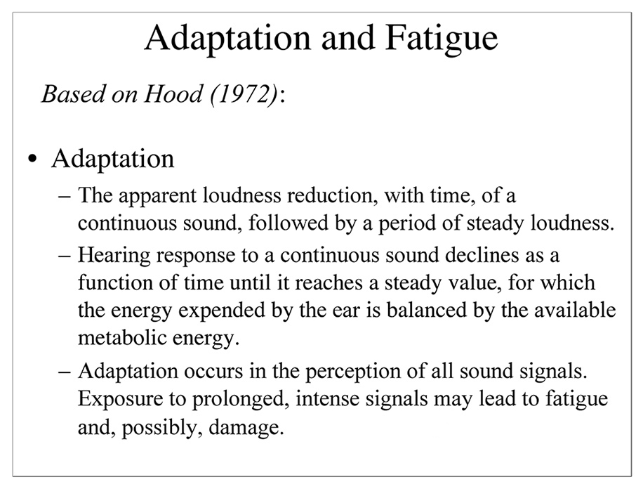 Adaptation, Fatigue, & Temporary Threshold Shift (TTS) |
