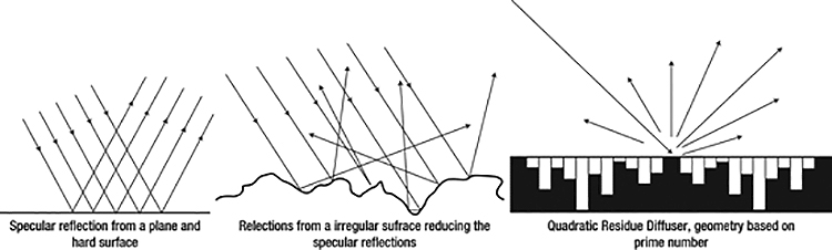 Acoustics borrows the basic law of reflection from optics: The angle of incidence will be equal to the angle of reflection.
